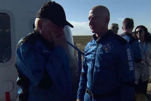 Hablando con Jeff Bezos después del vuelo de Blue Origin, el actor de 90 años le dijo: "Lo que me has dado es la experiencia más profunda que puedo imaginar". Continuó: "No tiene nada que ver con los hombrecitos verdes y el orbe azul. Tiene que ver con la enormidad, la rapidez y la rapidez de la vida y la muerte".