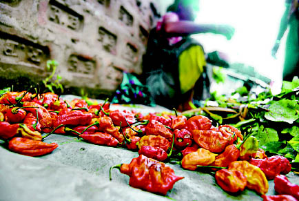 Un vendedor ambulante ofrece “chili caliente” (nuestros ajíes de la mala palabra) de la variedad “Bhut Jolokia”, en un mercado de la ciudad de Guwahatai, en el noreste de la India. Considerado el condimento más picante del mundo, en poco tiempo más formará parte del arsenal del ejército indio, que ha desarrollado gas lacrimógeno y granadas de mano cargadas con pimienta abrasante. Las autoridades planean utilizar las nuevas armas para contener disturbios, ya que su efecto no es letal y facilita la inmovilización de los manifestantes. El “Bhut Jolikia” que crece en India es mil veces más picante que el “chili” común. El gas también sería usado para mantener a los elefantes salvajes alejados de las reservas forestales. Foto: Agencia EFE