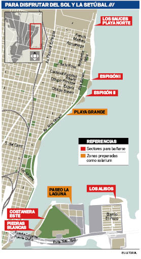 Aprovechar una casasquinta en la zona de la costa, la pileta de un club o la playa son algunas de las alternativas que pueden elegir los santafesinos que debieron quedarse en la ciudad y, según manda el termómetro,necesitan refrescarse. Para los visitantes, disfrutar de la laguna Setúbal también es una opción que ofrece ocho playas habilitadas (ver gráfico).