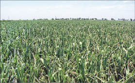 Los resultados de la presente campaña se hallan todavía en elaboración pero, a modo de reforzar lo hasta ahora expuesto, se muestran las fotos del maíz en plena seca de diciembre, las cuales son elocuentes. Cuando las condiciones ambientales hacían sufrir en extremo al cultivo, las franjas mejor nutridas mostraban una clara capacidad para tolerar mejor el stress a la que estaban sometidas, con un plus de crecimiento (Rafaela) y un adelanto en el desarrollo (Elisa).