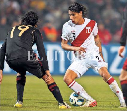 Figura y goleador. Paolo Guerrero está cumpliendo con las expectativas que tenían los hinchas peruanos. El delantero del Hamburgo alemán es, hasta ahora, el único jugador que anotó dos goles en la Copa. Foto: EFE