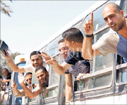A cambio, Israel ha excarcelado hoy a 477 presos palestinos que conforman la primera tanda de 1.027 prisioneros que serán liberados en virtud de un acuerdo hace una semana con Hamás.
