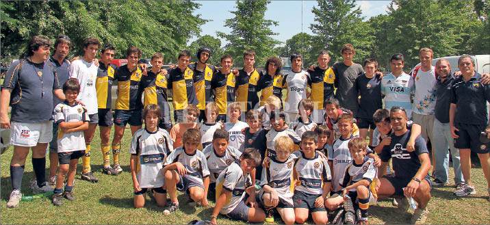 En Cabaña Leiva. El plantel M1 y algunos de los chicos de rugby infantil de El Quillá, aceptaron gustosos la requisitoria de El Litoral, durante el reciente Encuentro Nacional Profesor Roberto Moreno organizado por La Salle. Foto: Luis Cetraro.