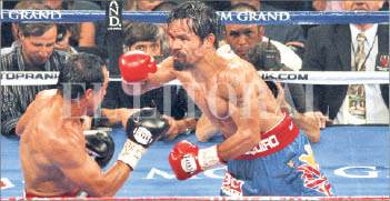 En acción. En una pelea que fue de menor a mayor, Manny venció nuevamente a Juan Manuel.
