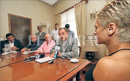 Ayer, en las oficinas de la Unión del Personal Civil de la Nación delegación Santa Fe, se formalizó el convenio mediante el cual, todos los elementos que el secretario general de dicho gremio, Alberto Maguid donó a la academia de boxeo que manejaba Brusa, se instalarán en el Club Atlético Colón, entidad en la que la actividad es desarrollada bajo las órdenes de José Lino Lemos. El acuerdo fue firmado por el presidente Germán Lerche y Maguid. También estuvieron los dirigentes sabaleros Rubén Moncagatta, Marcelo Maglianesi, Osvaldo Pradolini, Oscar Falomir y Ezio Mazzarantani, entre otros. También se presentó la campeona mundial ligero AMB, Alejandra Oliveras, quien obtuvo dicho cetro entrenada por Brusa, y que ahora trabaja junto a Lemos, con vistas a la pelea que protagonizará el 30 de diciembre exponiendo su corona. Foto: Mauricio Garín