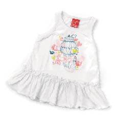 Musculosa María, en blanco, con detalle de una jaula con pájaros y vuelos, de Grisino. Verde Limón.