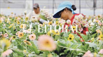 Una mujer trabaja en un cultivo de flores bajo cubierta en la localidad colombiana de Facatativá, preparando la mercadería ante la llegada de San Valentín, Día de los Enamorados, el próximo martes 14 de febrero. Colombia exporta en estos días 450 millones de flores que irán a parar a los enamorados de todo el mundo, ya que este regalo sigue siendo el preferido en esta celebración. Sólo por el Día de los Enamorados, los floricultores colombianos realizan el 15 % del total de sus ventas anuales.