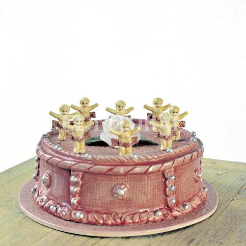 Se tituló esta idea del teatrista Alfredo Airas en una muestra interdisciplinaria que se realizó en Fundación Proa y que recorrió imágenes, trajes y esculturas de tortas clásicas del imaginario visual de un libro de recetas de Doña Petrona. Foto: Télam