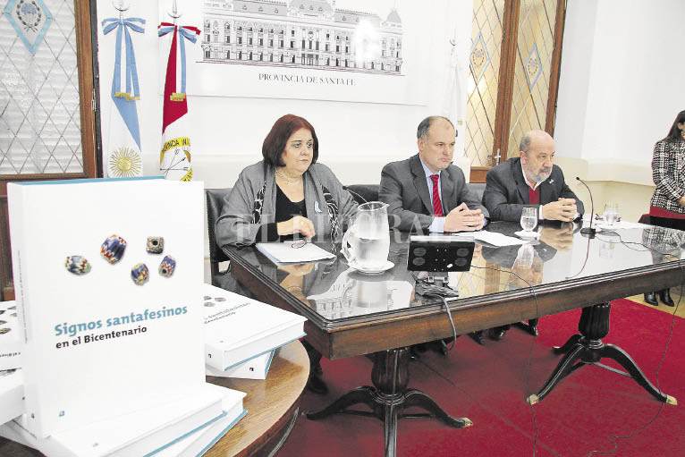 El vicegobernador Jorge Henn, junto a la ministra de Innovación y Cultura, Chiqui González, y el investigador Darío Macor, presentaron hoy por la mañana la obra “Signos Santafesinos en el Bicentenario”. La oportunidad fue propicia para hacer entrega de ejemplares a bibliotecas populares y organismos del Estado provincial, instituciones intermedias, universidades e instituciones educativas varias.