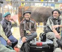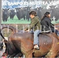 A Jinetes improvisados. Montando “a pelo” el toro de la entrada de calle Sarmiento, los chicos aprovechan sus vacaciones en contacto con el mundo rural.