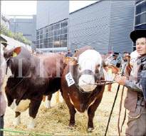 ¡A la pista!. Los toros Braford caminan por el corredor junto a la sala de prensa para deslumbrar a los jurados.