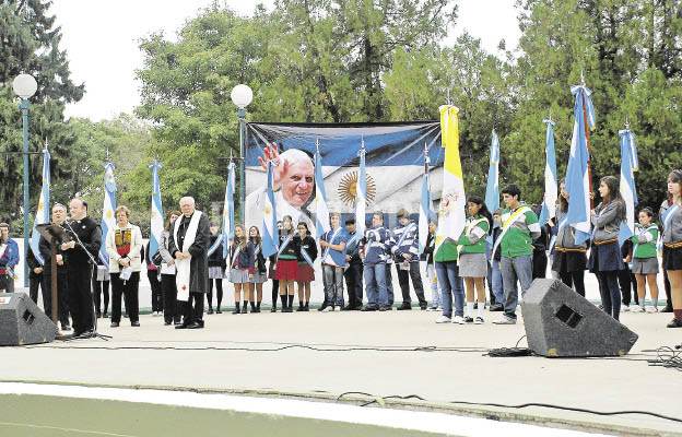 Tras la entrada de las banderas de ceremonias se realizó la Liturgia de la Palabra. En la homilía, Arancedo comprometió a los jóvenes “a trabajar por un mundo que los libere de los flagelos y esclavitudes; a amar a la Patria honrando a sus símbolos como la Bandera Nacional”. Asimismo, exhortó a los jóvenes a prometer “defender la Bandera Argentina, respetarla y amarla, con fraterna tolerancia y respeto, aceptando solidariamente en sus diferencias a todos los que pueblan nuestro suelo y transmitiendo, en todos y cada uno de nuestros actos sus valores permanentes e irrenunciables”. Los jóvenes presentes respondieron al unísono su promesa de fidelidad a la enseña patria.