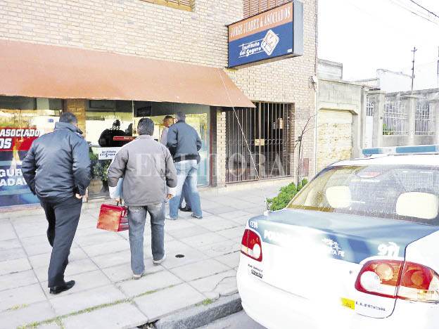 Amigos de lo ajeno hicieron de las suyas en una consultora de seguros de barrio Sur. Del hecho se tuvo noticias poco después de las 8 cuando ocasionales transeúntes advirtieron que la puerta del Instituto del Seguro (ubicado en Saavedra al 1800) estaba abierta, por lo que el llamado a la policía no se hizo esperar. A poco de arribar los uniformados inspeccionaron el lugar y comunicaron la amarga noticia a los encargados del negocio. Según se supo para ingresar los cacos forzaron una puerta blíndex hasta que hicieron saltar las trabas de la cerradura. Una vez en el interior del negocio sustrajeron dos equipos de computación completos (All in one), además de 3 mil pesos en efectivo y alguna documentación. Peritos de la Unidad Regional I trabajaron en el lugar (foto) y se llevaron información para la causa.