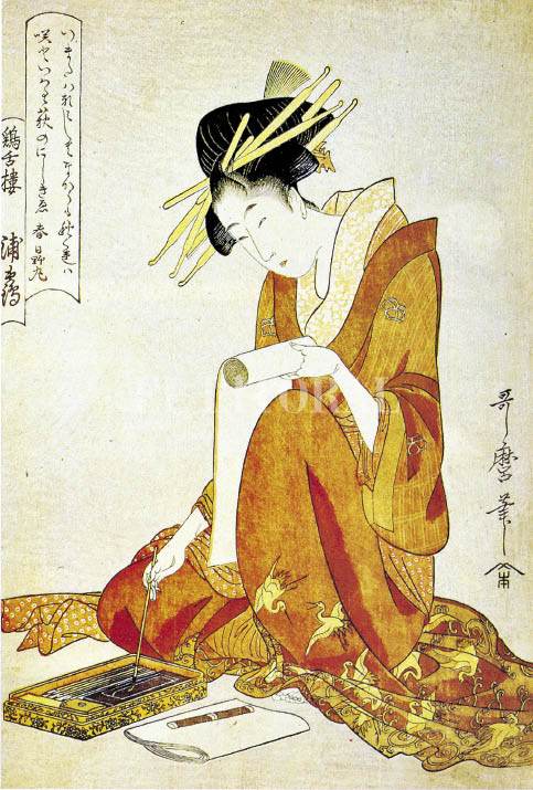 “La cortesana Urazun de Leizetsuro escribiendo una carta”, de Kitagawa Utamaro.