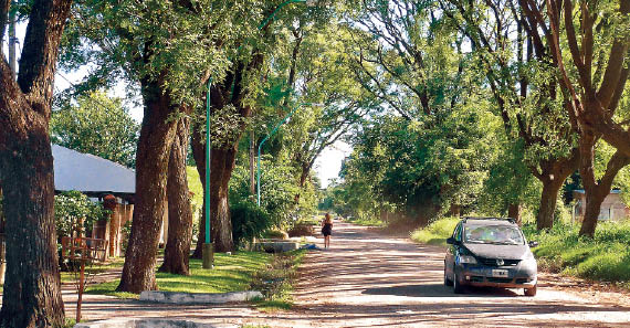 Contraste. Una vez que se abandona el ruido y el bullicio imperantes en avenida Riccheri, ésta es la imagen de barrio que predomina en Adelina Oeste: calles de mejorado pétreo, enormes arboledas y una tranquilidad casi poética. Foto: Agencia Santo Tomé