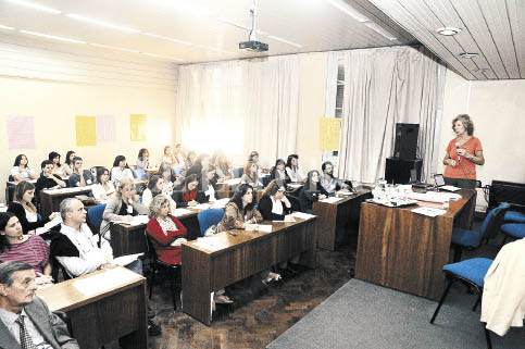 Taller. Nudelman diserta ante unos 50 profesores asistentes. La capacitación culmina mañana. Foto: Guillermo Di Salvatore