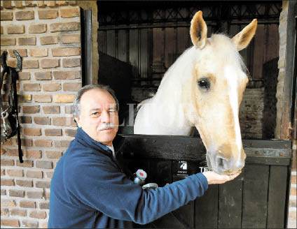 Amigos entrañables. Luis, en su recorrida cotidiana por los boxes, donde monitorea el estado de los caballos.