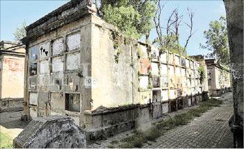 El cementerio público hoy padece un muy mal estado edilicio en muchos de sus sectores. Lo admiten desde el municipio, y prometen un plan de recuperación y puesta en valor (ver “Plan de...”). El primer gran problema se ve en la antiquísima capilla del oratorio, a 50 metros de la entrada: vallada para evitar su ingreso, la vieja estructura está en pésimo estado y pareciera que va a ceder en cualquier momento. Sus columnas, cúpula y paredes de décadas muestran grietas y rajaduras profundas adonde nacen plantas y musgo como peste.