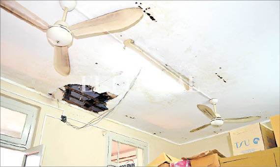 Se viene abajo. No da para más. Cada vez que llueve se presentan serios problemas para poder trabajar en las salas preparadas para tal fin.