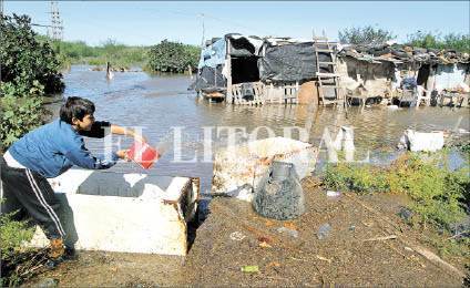 Desesperados. Las primeras familias inundadas por la crecida del Salado miraban con estupor sus ranchos con medio metro de agua.