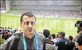 El Litoral, presente. Enrique Cruz (h), enviado especial de este diario, en las tribunas del estadio Arena Independencia de Belo Horizonte, donde entrenó la selección. Foto: El Litoral