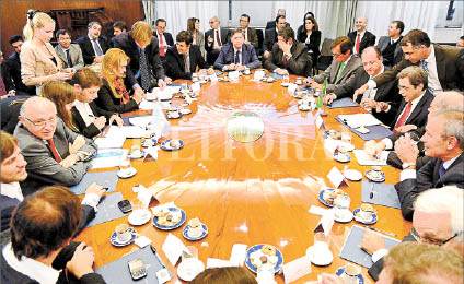 Los ministros de Economía, Axel Kicillof y de Industria, Débora Giorgi, encabezaron la reunión de trabajo con el titular de Industria de Brasil, Mauro Borges. Foto: DyN