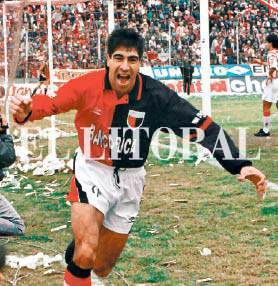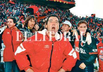 José Vignatti festeja en el vestuario la tarde del ascenso de 1995. Foto: Archivo El Litoral