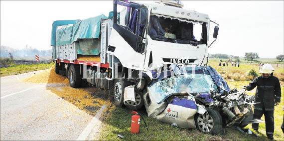 Por su parte, el camión Fiat Iveco quedó cruzado sobre la cinta asfáltica, en la que además derramó gran parte de su carga de maíz.