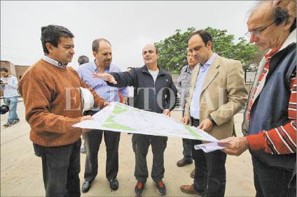 Recorrida. Esta mañana, funcionarios municipales y los empresarios Héctor Desvaux y Edgardo Baumgartner recorrieron el nuevo emplazamiento de Island.
