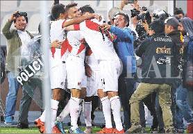 Desahogo. Los jugadores festejan con Jefferson Farfán, autor del único gol del partido. Perú necesitaba un triunfo de manera urgente. Foto: EFE
