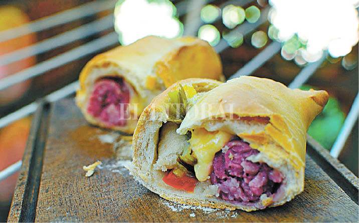 Cocer los chorizos con o sin piel en el horno y reservar. Saltear el morrón y verdeo fileteados en oliva, salpimentar y reservar. Tomar la masa (ya condimentada y descansada con el chimichurri) y estirar rectángulos del tamaño de un chorizo. Rellenar con rodajas de chorizo, el salteado y cubitos de queso y enrollar cerrando las puntas. O bien, rellenar con rodajas de morcilla sin piel más el salteado de verdeo con nueces y curry. Cocer a la chapa fuerte en placa aceitada por unos 15 o 20 minutos.