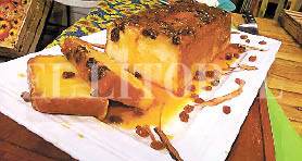 Paso 3: Hacer la mezcla de budin de pan. En un bowl mezclar los huevos con el azúcar y la esencia de vainilla. Agregar la mezcla de pan y leche, las nueces picadas gruesas y las pasas remojadas en rhum. Volcar la preparación sobre el caramelo frío.
