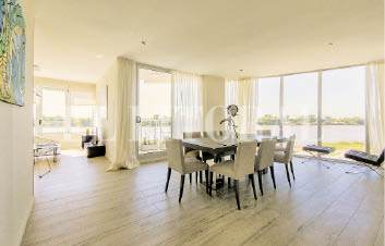 El mismo, con orientación sureste, cuenta con un amplio estar que goza de la mejor vista al río, potenciada por la curvatura revestida en piel de vidrio de piso a techo; cocina y lavadero amoblados completamente con muebles de primera calidad, dormitorio con vestidor y baño en suite con detalles de vanguardia, un cálido living y balcón al Este.
