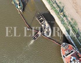 Uno de aquellos barcos apareció por estos días recostado sobre la costa del río Santa Fe, también denominado Canal de Derivación Sur. Esto es en la costa portuaria, frente a Alto Verde, entre el atracadero de los buques petroleros y la toma de agua de la ciudad.