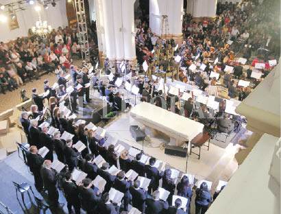 La Orquesta Sinfónica y el Coro Polifónico durante un concierto realizado en la Basílica de Guadalupe en 2017.