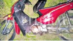 Peritos del Gabinete Criminalístico trabajaban en el lugar, donde hallaron la moto en la que intentó huir el delincuente.