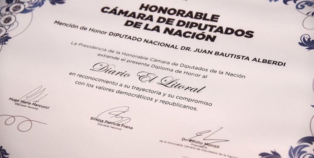 La distinción fue impulsada por los diputados Silvina Frana y Hugo Marcucci, quienes entregaron el reconocimiento al presidente del directorio de El Litoral, Nahuel Caputto, acompañados de legisladores de diversas bancadas.