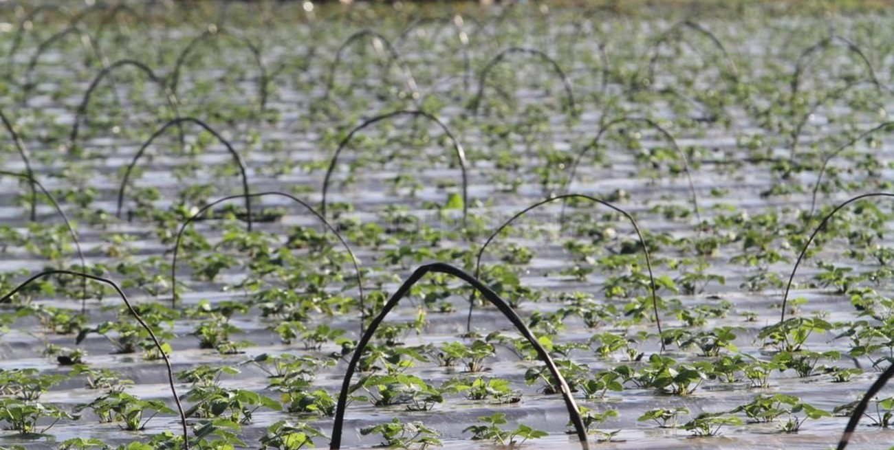 Para “evitar” esa deriva cuando se pulverizan los lomos convencionales, los que se están produciendo sin químicos se tapan con el mismo plástico del microtunel.