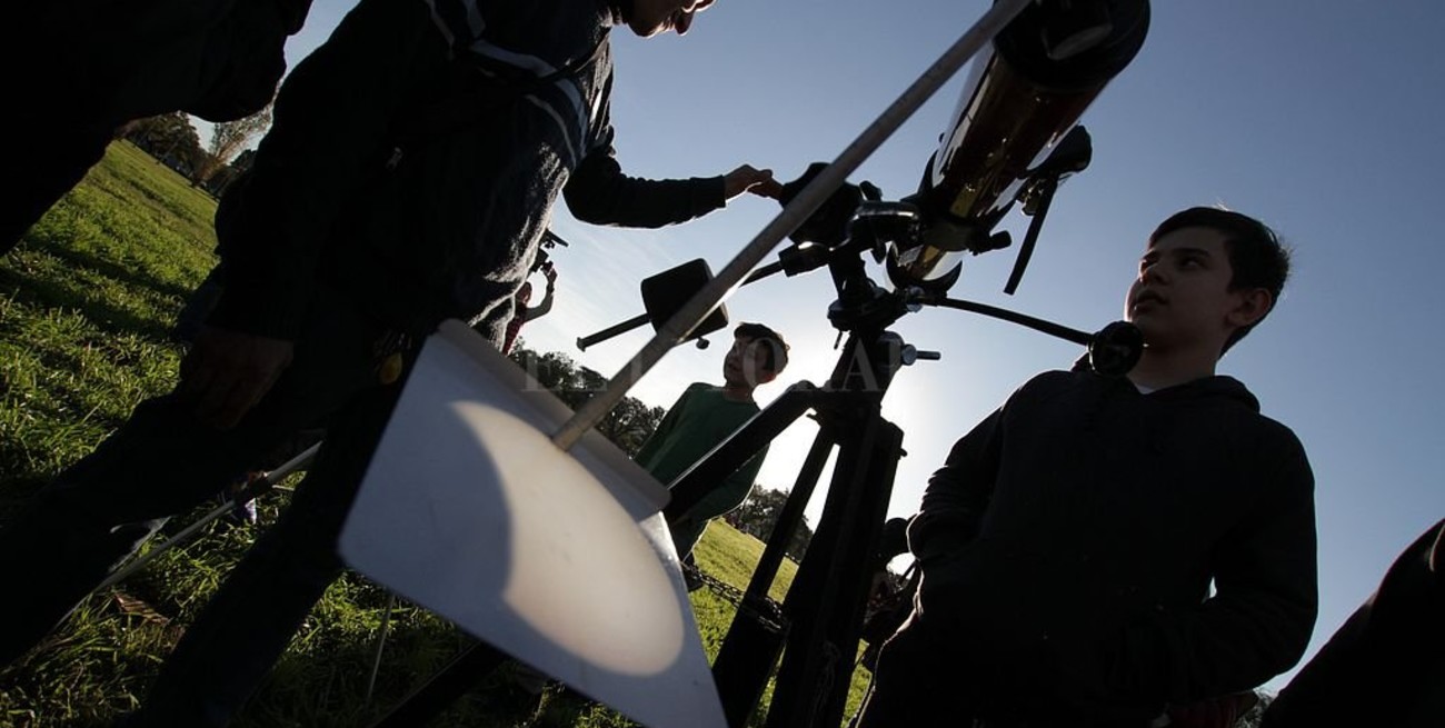 Las familias llegaban con el mate y la curiosidad de ver de qué se trataba ese evento astronómico que tuvo en vilo al país. Había dos telescopios, filtros especiales y máscaras de soldar para ver el eclipse total de sol sin riesgos oculares.