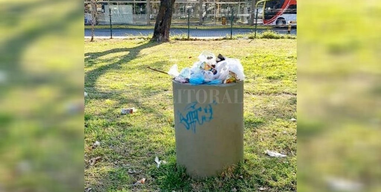 Abandono: los cestos desbordan de basura en la zona del Predio Ferial