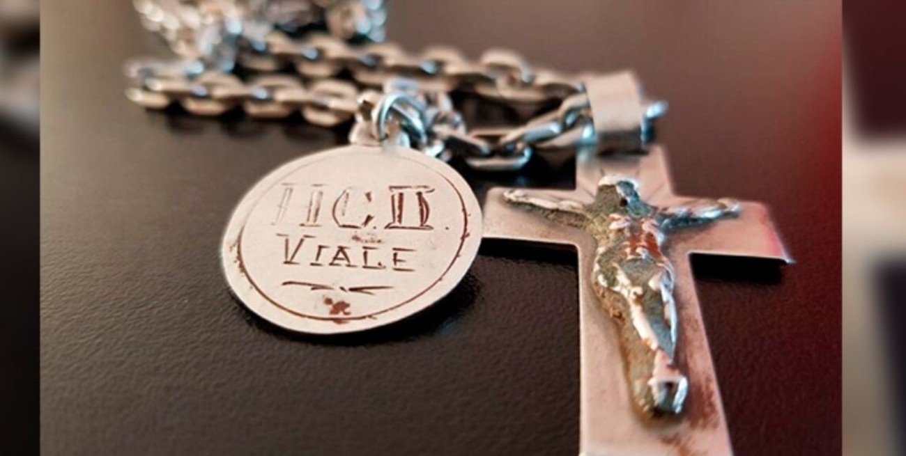 Se trata de una cadena con crucifijo que le habían regalado sus padres, y una medalla otorgada por el Concejo Deliberante de Viale en reconocimiento al mejor promedio de la Escuela primaria.