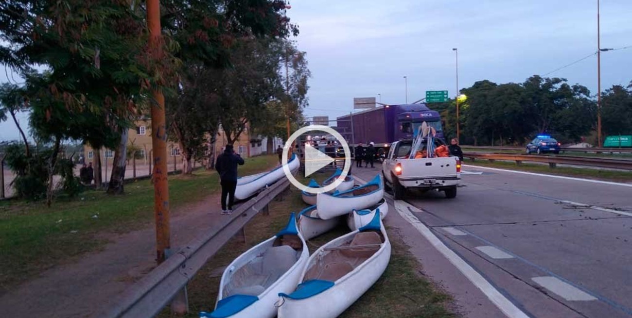Se produjo pasadas las 7 entre un auto y una camioneta que llevaba embarcaciones unipersonales. El tránsito fue interrumpido por personal de seguridad.