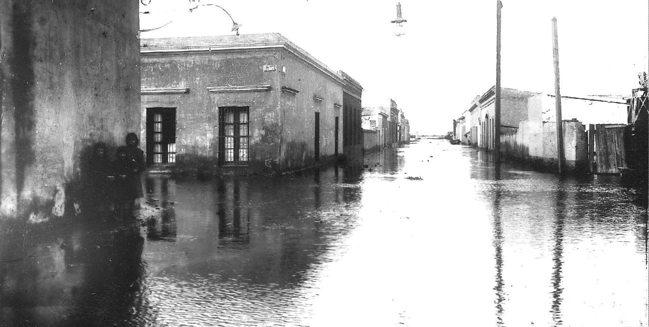 Aquel invierno de principios del siglo XX, la plaza España, frente a la mítica farmacia “Las Colonias” y a una cuadra de la Estación del FFCC Francés (hoy Terminal de Ómnibus), quedó oculta bajo el plano especular de un lago manso y vasto, que invitaba a transitarlo en botes y canoas. Ese espacio, que había sido símbolo conspicuo del pujante comercio, se transformó con los años en un hito geográfico de la catástrofe.