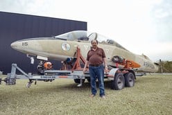 La aeronave Aermacchi MB-339 se encontraba desarmada en Houston (Estados Unidos), a más de 8000 kilómetros de Argentina, ya que había sido canejada junto a otros aviones a cambio de repuestos. Hoy, está en partes en el aeroclub de Sunchales (Santa Fe), a aproximadamente 7 cuadras de la casa de su piloto, el aviador naval Owen Crippa.