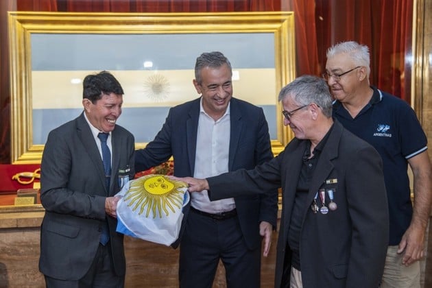 Durante el acto, Javkin destacó el profundo valor simbólico de la travesía. “El mensaje que ustedes van a llevar a nuestro pico más alto quizá trascienda al mundo. Es un mensaje de paz, sin renunciar nunca a lo que implica un reclamo soberano”, expresó ante los veteranos y ex combatientes presentes.