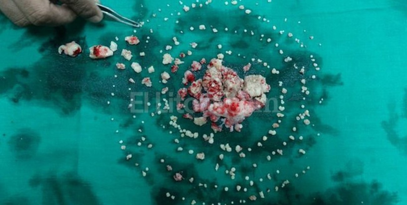 "En un principio no podíamos cortarla (la encía), por lo que tuvimos que usar martillo y cincel para conseguirlo. Una vez abierta empezaron a salir dientes como pequeñas perlas. Al principio los recogíamos, pero luego nos cansamos. Contamos hasta 232 dientes", agregó.