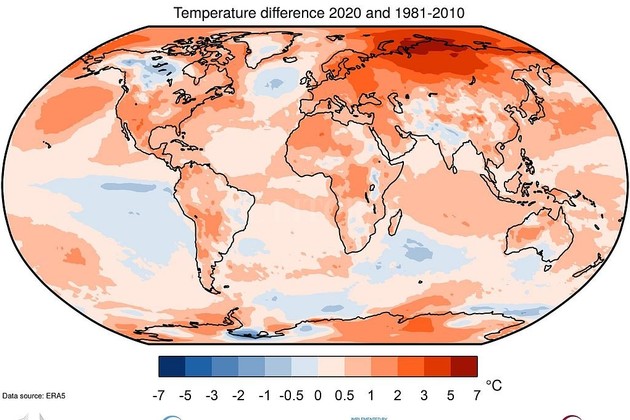 El año pasado registró un aumento de la temperatura media de +1,25 grados respecto a la era preindustrial, pero afirmaron que "el 2020 iguala el récord de 2016 pese a un enfriamiento de La Niña", según el servicio.