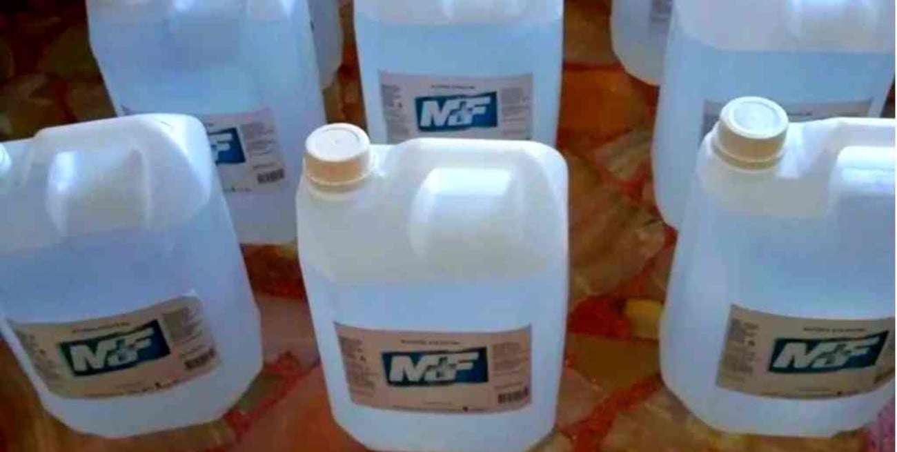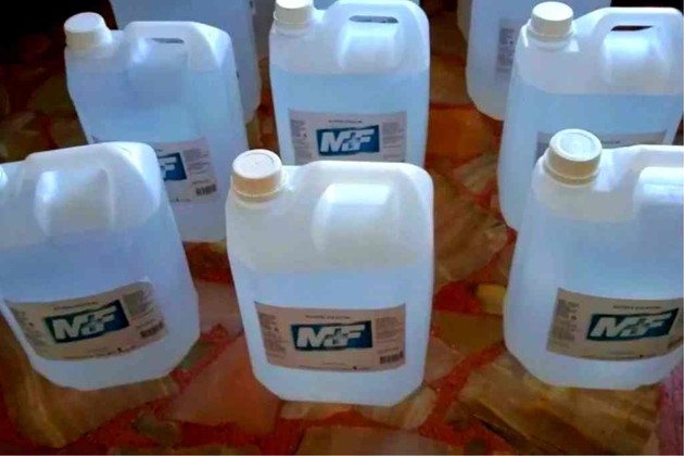 De hecho la empresa Fradealco, que fabrica los productos M + F, informó que no distribuye ni comercializa unidades en presentación de 5000 ml (5L) en los que se mencione la marca M+F, la cual sólo es utilizada para las presentaciones de 250cc, 500 cc y 1000 cc de alcohol etílico de venta al público.