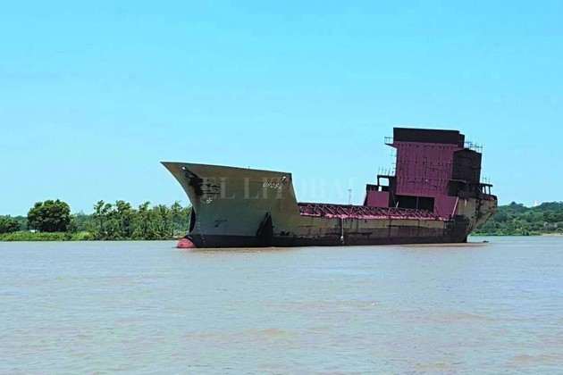 Su paso en solitario por las costas del Paraná causó en los últimos días sorpresa e incredulidad entre pescadores y lugareños. La enorme silueta de acero terminó encallada en un banco de arena en cercanías de lo que se conoce como “La perla del Paraná”, para asombro de los curiosos que se acercaron a comprobar lo que ocurría.