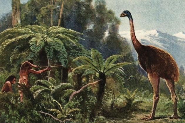 El moa fue una enorme ave no voladora que habitó Nueva Zelanda.